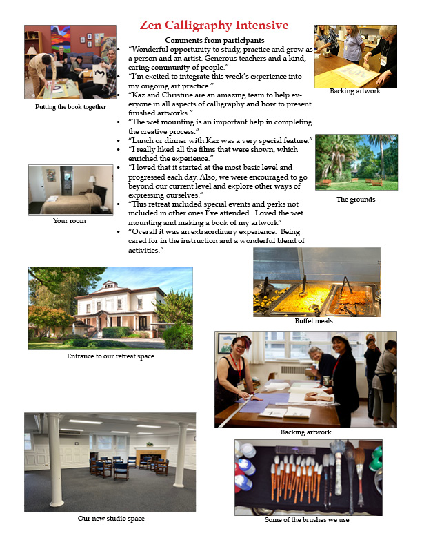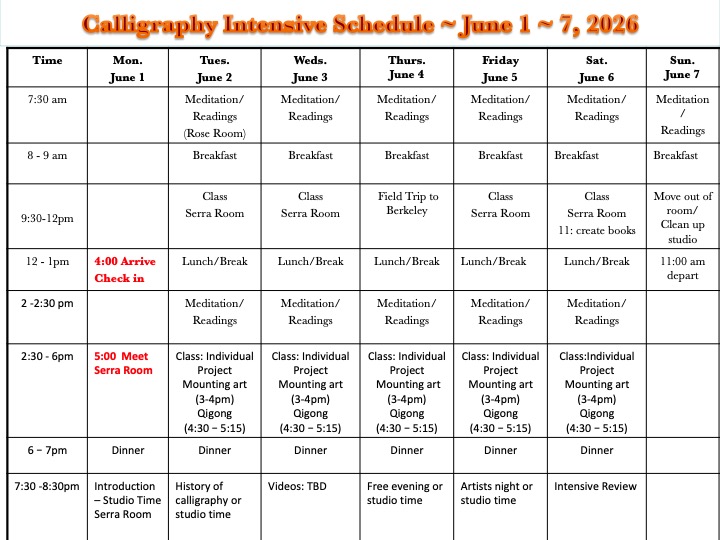 Deposit: Please contact Christine to put your name on the list of participants. Early registration is advised because the workshop is limited to 23 participants. Total cost for the week is $2150. After February 1, 2026 (late registration) cost of the workshop is $2300. Workshop deposit ($1150) must be paid by February 1, 2026. Make checks out to Zen Brush Workshop and send to 10688 Grays Court, Forestville, CA 95436 or contact Christine to make deposit arrangements. Final payment, $1000 should be paid by April 1, 2026. Participants outside the U.S. can do a wire transfer or be invoiced through Paypal with a small transaction fee added. Contact Christine to make these arrangements.